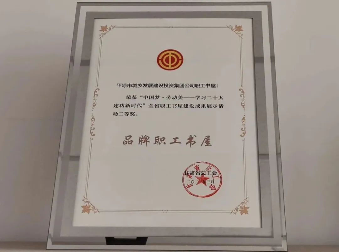 近日,由省總工會組織開展的“中國夢?勞動美——學(xué)習(xí)二十大 建功新時代”全省職工書屋建設(shè)成果展示活動、職工經(jīng)典誦讀征集展播活動評選結(jié)果揭曉,平?jīng)鍪谐青l(xiāng)發(fā)展建設(shè)投資集團有限公司職工書屋榮獲“品牌職工書屋”。