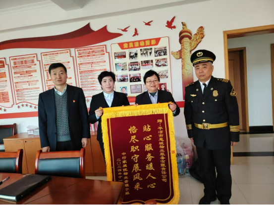 近日,中行家屬院業(yè)委管理人員來到惠城物業(yè)物業(yè)站,贈送“貼心服務(wù)暖人心,恪盡職守展風(fēng)采”錦旗。